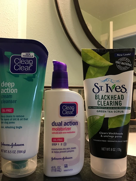 Before switching to treating my acne naturally from the inside, I was obsessed with trying every acne wash and lotion out there. I had drawers full of half-used products that promised beautiful results but irritated my skin and left me worse off than when I started. Washes, toners, lotions, day creams, night creams, it was all too much. I’ve since seen much better results using simple face washes that don’t over-dry my skin followed by a light weight, non-greasy lotion. I’m currently using Clean & Clear’s Deep Action Cream Cleanser and their Dual Action Moisturizer. I like to switch-up my wash every bottle or two to keep it fresh, but have been using this lotion for almost a full year now and love it! I also use St. Ive’s Green Tea Scrub in the shower to gently exfoliate and remove any dirt and sweat at the end of the day.